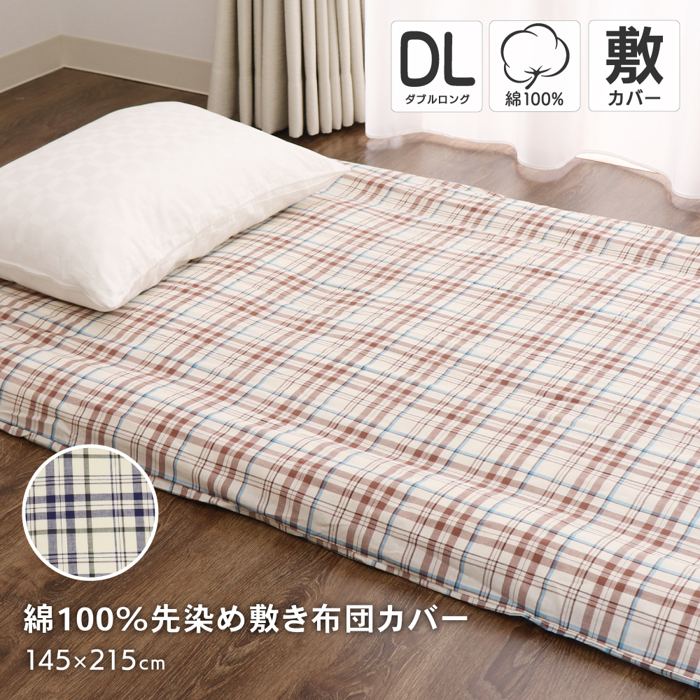 先染めチェック柄、綿100%の敷布団カバーです。