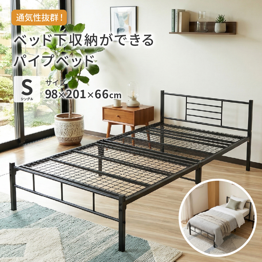 ベッドフレーム 組み立て式 パイプベッド シングルサイズ 約98×201×66cm ベッド下31cm 耐荷重100kg