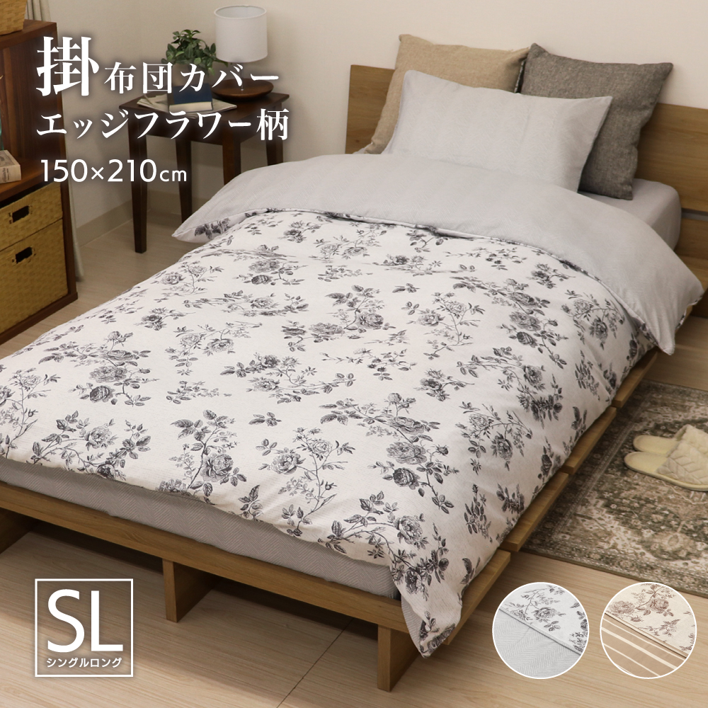 デッサン風にバラが描かれた花柄の掛け布団カバーです。