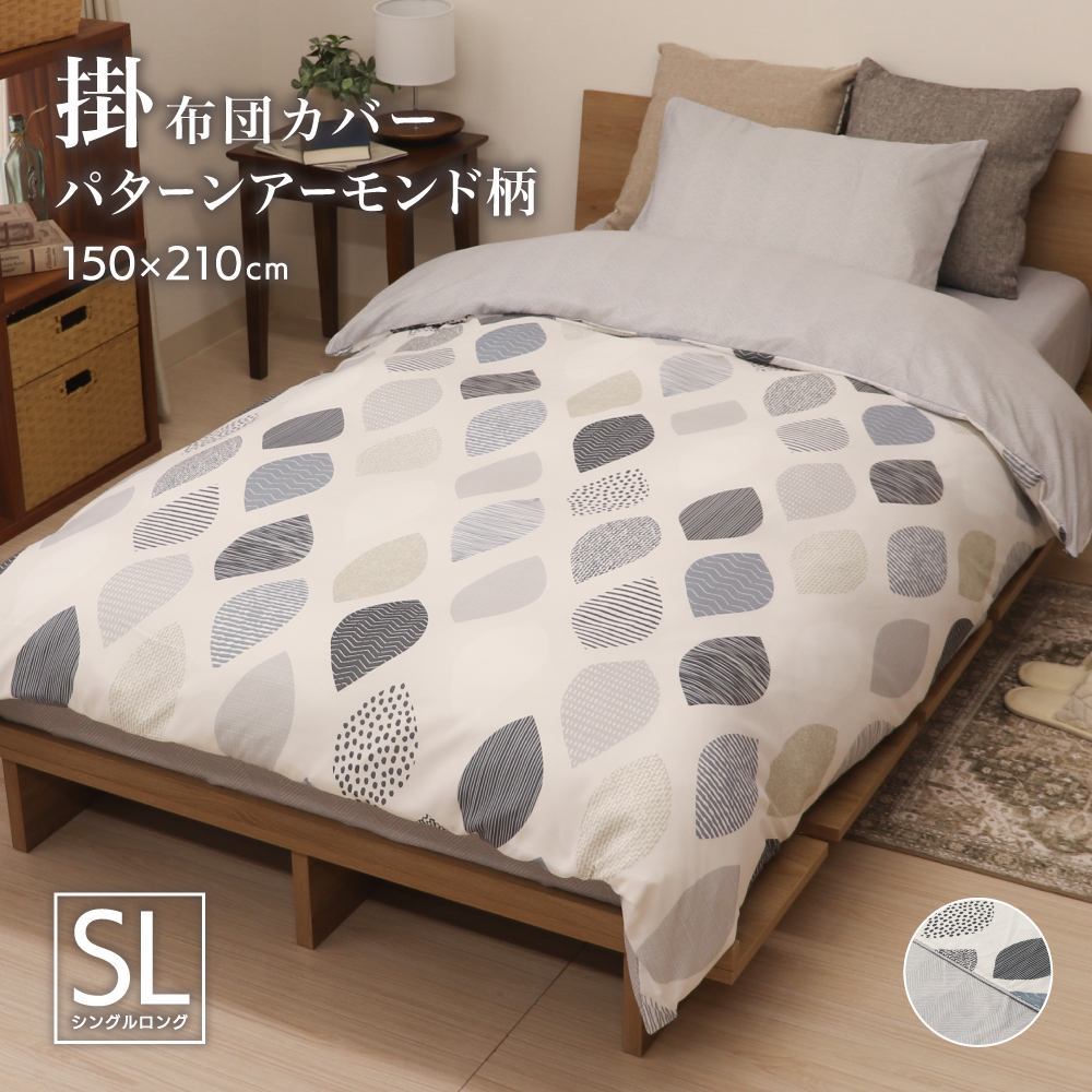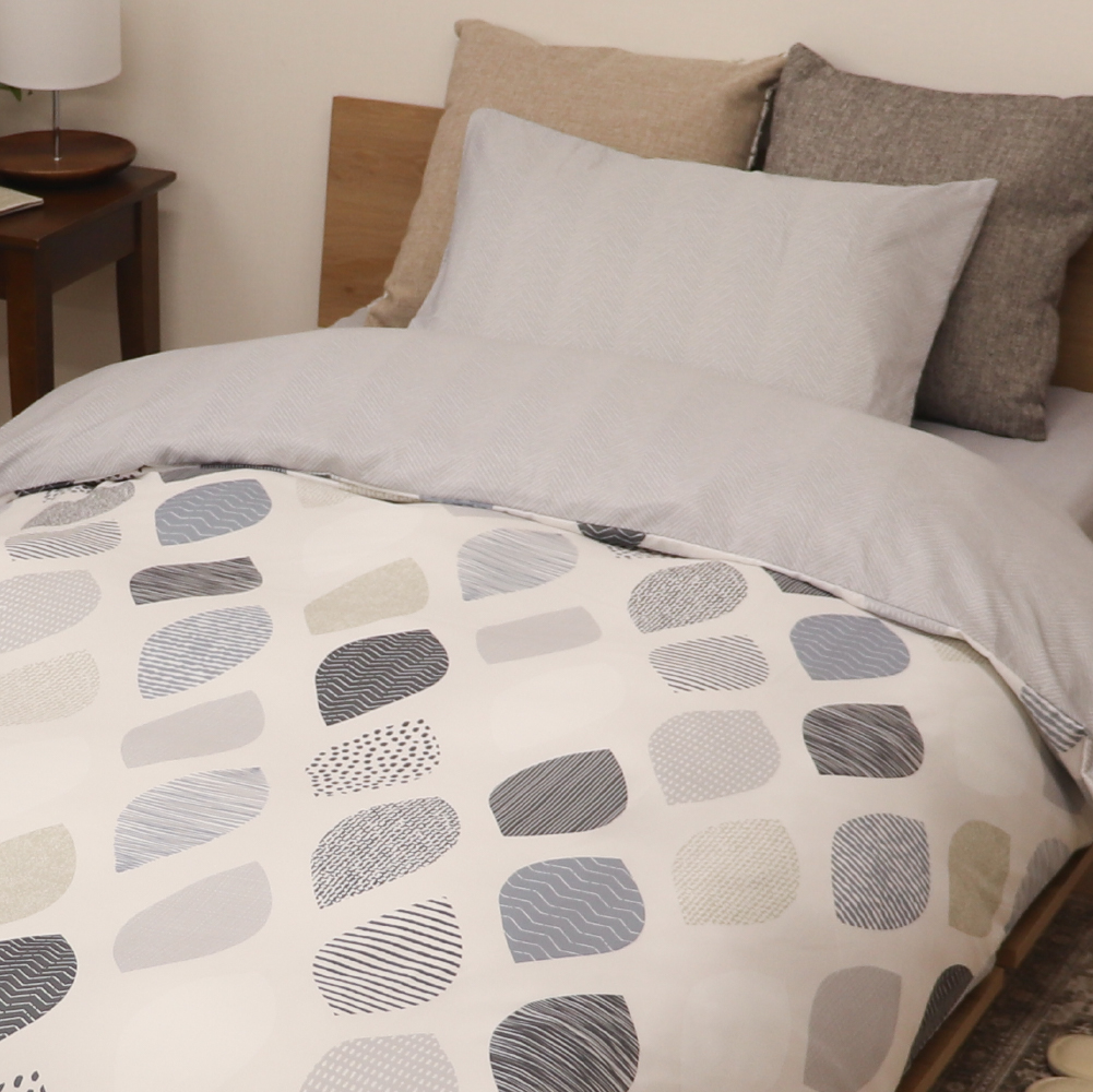 北欧柄風のアーモンドのような幾何学模様がオシャレな掛け布団カバーです。