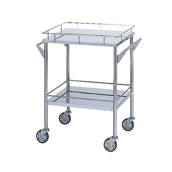 ●材質:ステンレス(SUS304)●キャスター:φ100mm(ストッパー無し)●棚板耐荷重:20kg●棚間隔:455mm●足パイプ径:φ25mm●幅×奥行×高さ(mm):600×450×800●重量(kg):10.8●処置車●型番:C-2M●タグ:院内運搬機器