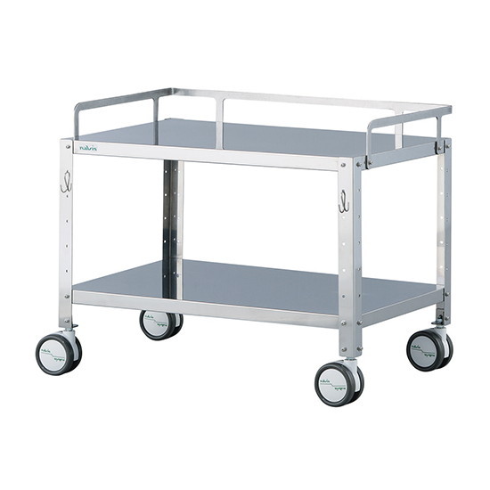 ●天板には落下防止の三方手摺が付いています。●人気の4色からお選びいただけます。●付属のドライバーで、容易に組み立てが可能です。●2ヶの小物掛け用フックが付いています。●追加棚板で更に拡張性を高めました。●段数:2段●幅×奥行×高さ(mm)※:603×402×486 ※手摺含む●重量(kg):約6.0●色:シルバー(塗装無)●材質:ステンレス(SUS430)(アクリル焼付塗装)●有効作業面寸法:597×397mm●キャスター:Φ75mmウレタン製(ストッパー無し)●棚間隔:約50mmピッチで調節可能●耐荷重:約20kg/段●組み立て式(要工具)●交換用キャスター:ナビスキャスターΦ75 M8ネジ S無し(品番/0-1513-01-01)●タグ:院内運搬機器