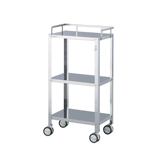 ●天板には落下防止の三方手摺が付いています。●人気の4色からお選びいただけます。●2ヶの小物掛け用フックが付いています。●追加棚板で更に拡張性を高めました。●付属のドライバーで、容易に組み立てが可能です。●段数:3段 ※2段+追加棚板となります。●幅×奥行×高さ(mm)※:453×302×897 ※手摺含む●重量(kg):約6.5●色:シルバー(塗装無)●材質:ステンレス(SUS430)(アクリル焼付塗装)●有効作業面寸法:447×297mm●キャスター:Φ75mmウレタン製(ストッパー無し)●棚間隔:約50mmピッチで調節可能●耐荷重:約20kg/段●組み立て式(要工具)●交換用キャスター:ナビスキャスターΦ75 M8ネジ S無し(品番/0-1513-01-01)●タグ:院内運搬機器