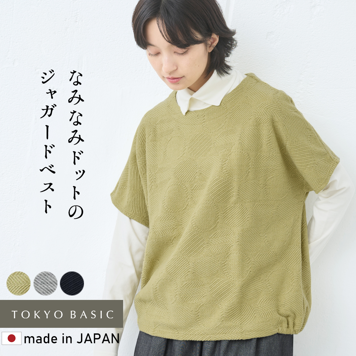 ベスト レディース ウール混 ジャガード カットソー ベスト 日本製 袖付き ドット ミセス レディースベスト