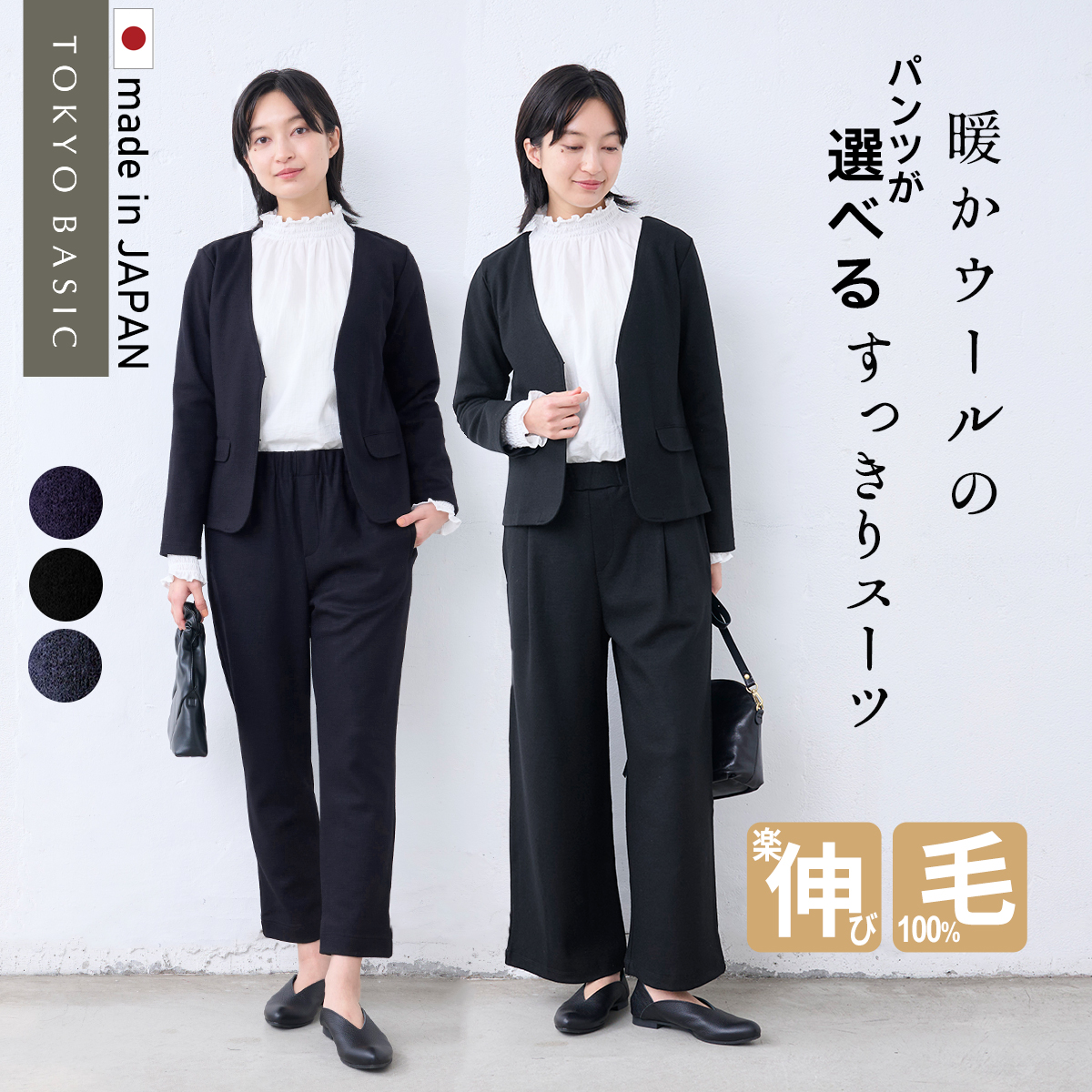 入学式 服装 ママ セレモニースーツ 卒業式 日本製 40代 50代 圧縮 ウール100% 選べるパンツ 暖かい 防寒 大きいサイズ