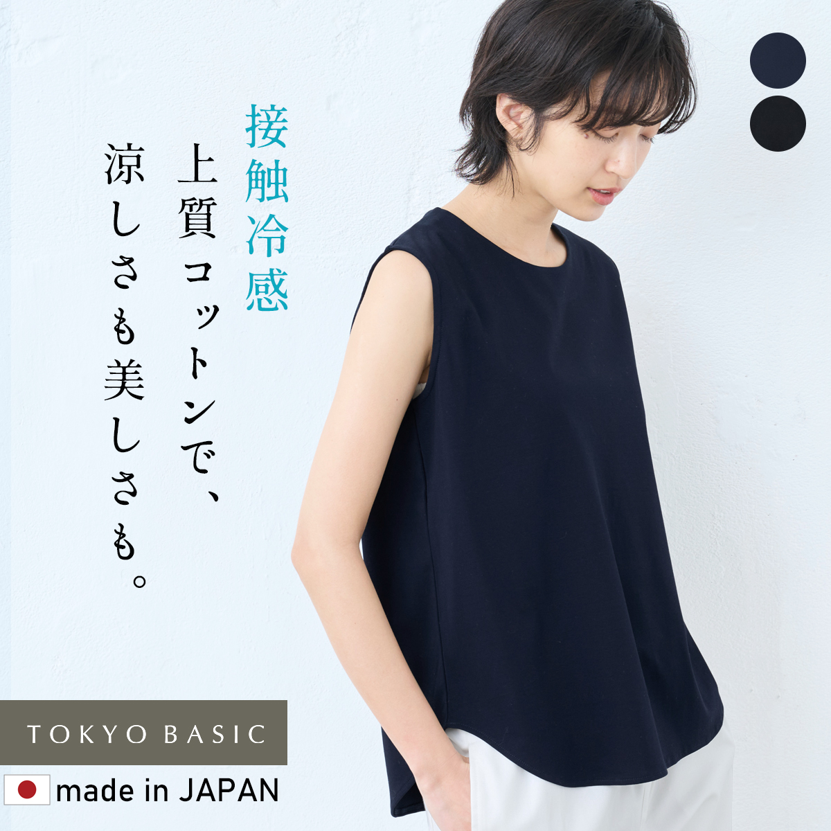 キーワード 接触冷感 ノースリーブ tシャツ レディース カットソー 強撚 コットン100% ノースリーブ ゆったり プルオーバー 日本製 40代 50代 60代 タンクトップ 綿100 涼しい カジュアル 無地 接触冷感 夏 トップス ブラウス おしゃれ シンプル ナチュラル ネイビー 紺 ブラック 黒