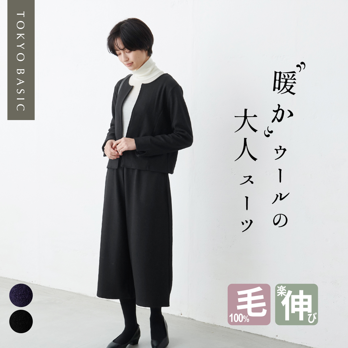 入学式 服装 ママ セレモニースーツ 日本製 卒業式 40代 50代 大きいサイズ 体型カバー 圧縮ウール ノーカラー ジャケット ガウチョ パンツ
