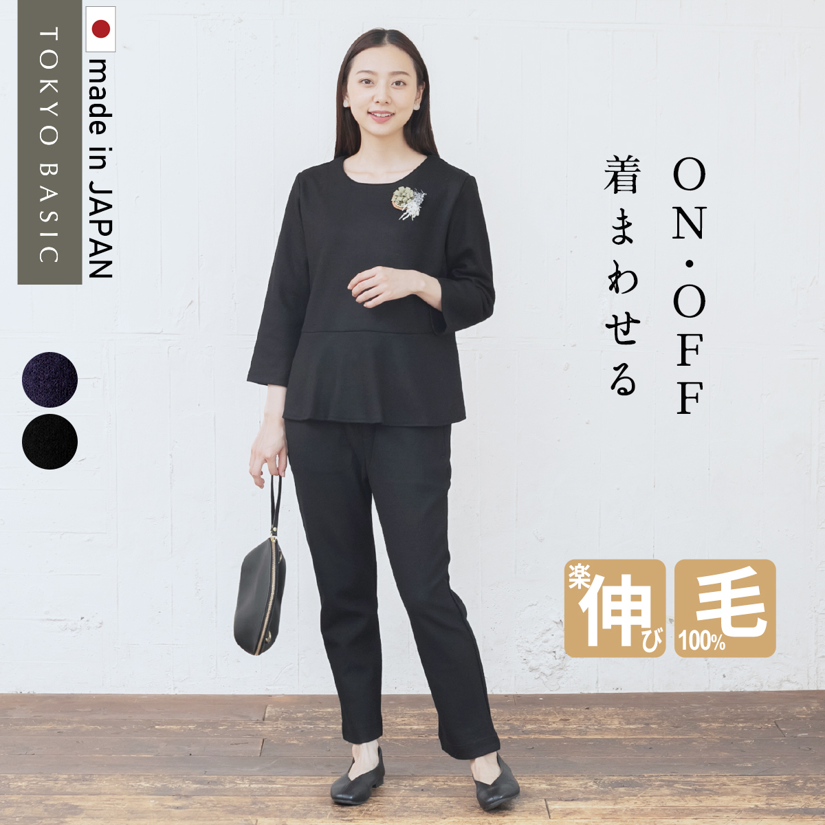 入学式 服装 ママ セレモニースーツ 日本製 卒業式 40代 50代 大きいサイズ 体型カバー 圧縮 ウール100% ペプラムPO アンクルパンツ
