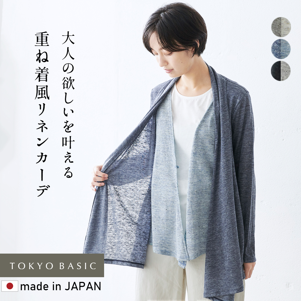 カーディガン レディース 薄手 プレミアム リネン100% フェイクレイヤード 日本製