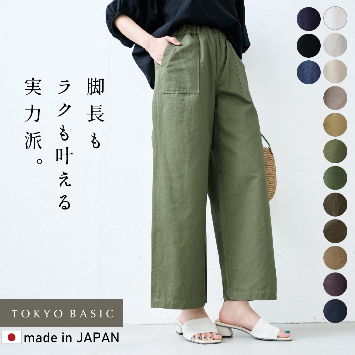 ワイドパンツ レディース イージーパンツ リネン パンツ 40代 50代 日本製 リネン&コットン ベイカーワイドパンツ