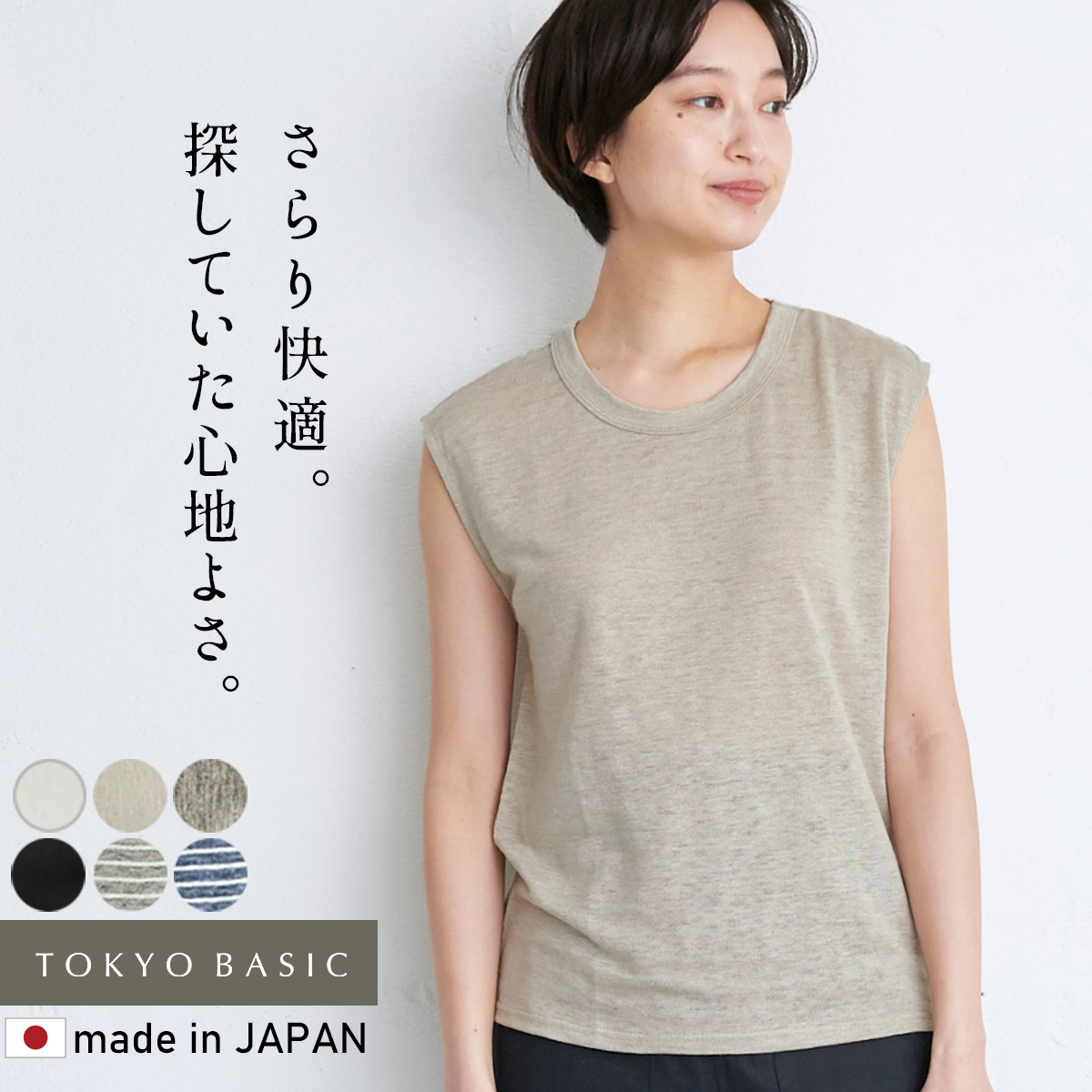 清涼感があり、さらりと快適。とにかく暑い季節には涼しい洋服を。という事で、定番のプレミアムリネンでノースリーブプルオーバーをつくりました。肩を出して、とにかく涼しく。盛夏だけでなく、インナーとしては、ロングシーズン活躍できます。また、同素材のカーディガンとのアンサンブルも楽しめます。tokyobasic TOKYO BASIC 東京ベーシック