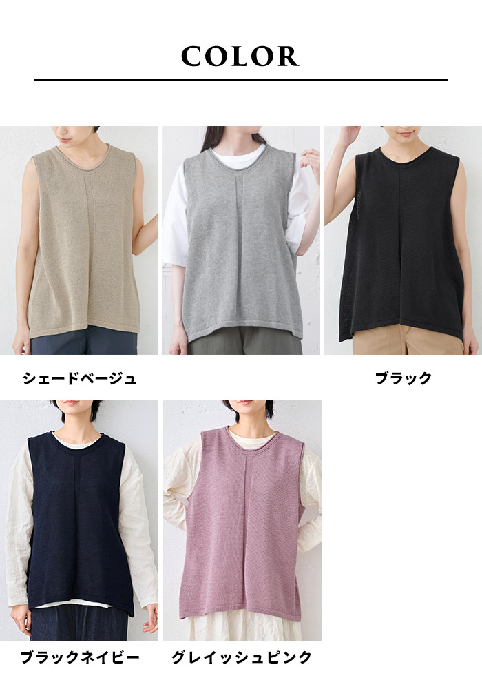 サマーニット コットンニット ベスト レディース ギマコットン100% ノースリーブ プルオーバー 日本製