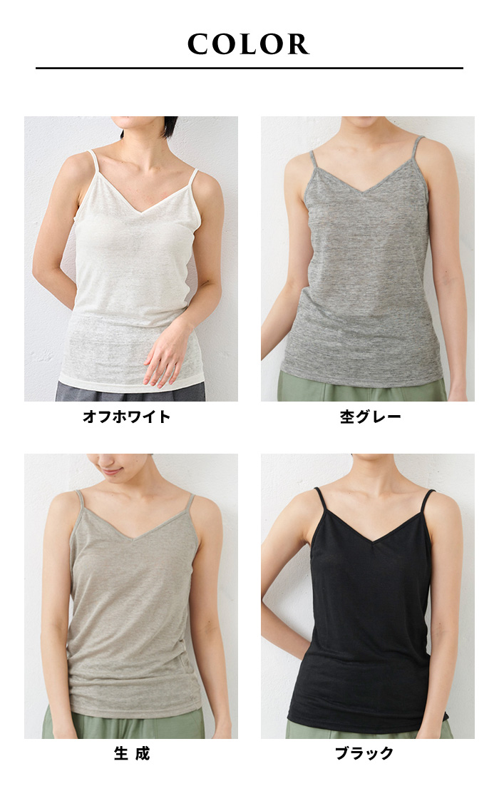 関連キーワード キャミソール リネン 日本製 40代 50代 60代 女性 ファッション インナー トップス リネン天竺 麻100 無地 涼しい さらさら 吸湿 速乾 天然素材