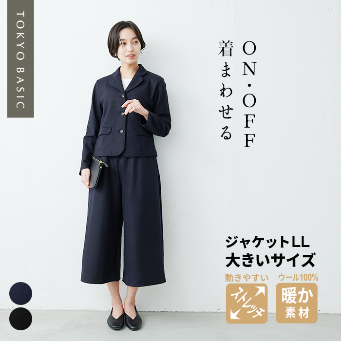 ジャケットLLサイズ 入学式 服装 ママ セレモニースーツ 日本製 卒業式 40代 50代 大きいサイズ 圧縮 ウール100% 三つボタンジャケット ガウチョパンツ