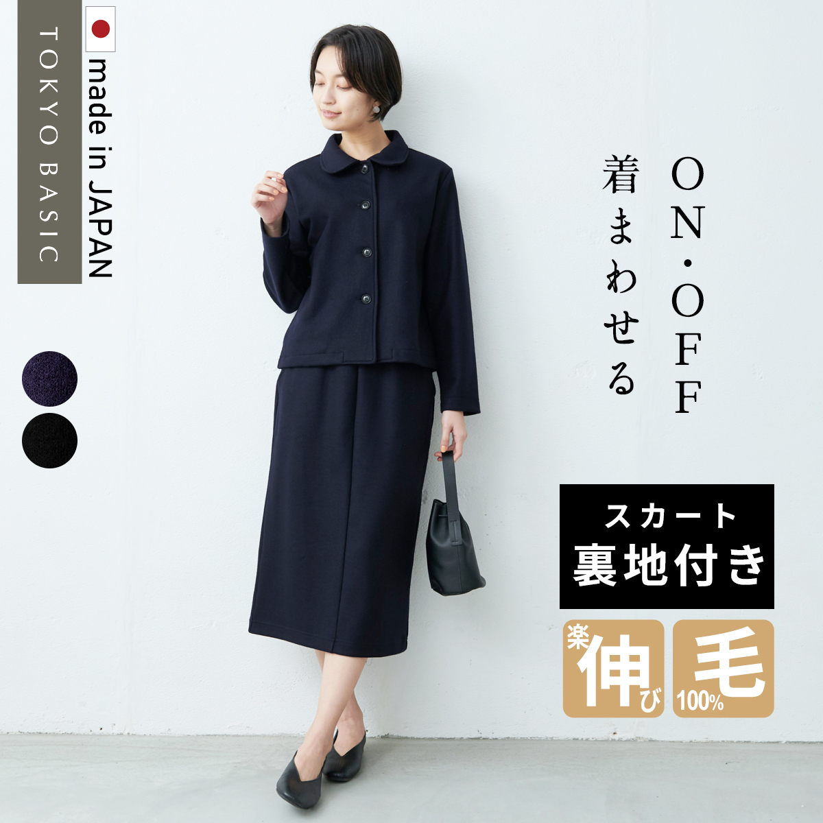 スカート裏地付き 入学式 服装 ママ セレモニースーツ 日本製 卒業式 40代 50代 圧縮 ウール100% マルエリ ジャケット ロングスカート