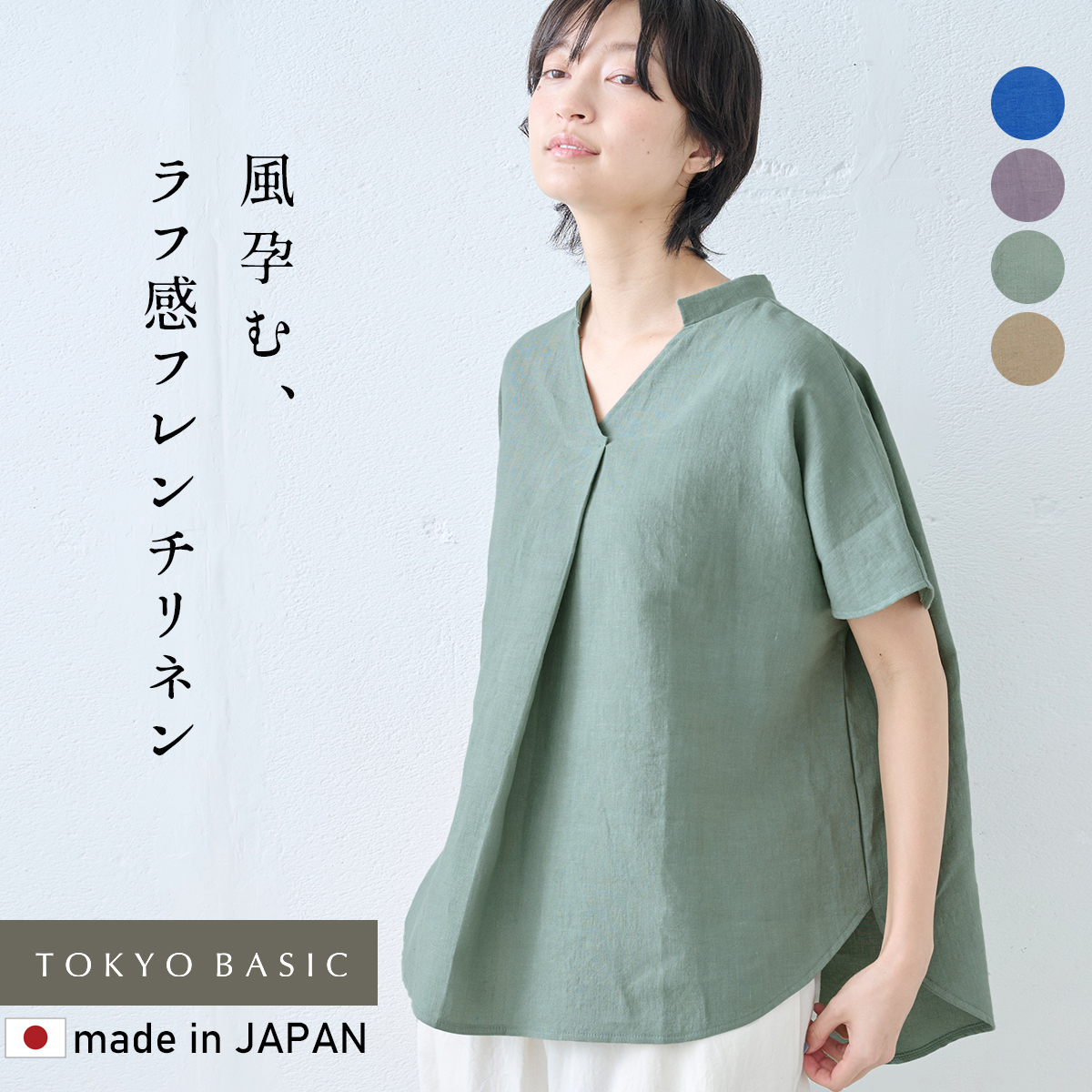 風孕む、ラフ感フレンチリネン。フロントタックの風とおるシルエット。フロントに施したタックがポイントのブラウスが40番手フレンチリネンで復活。動くたび、ふわりと揺れて、さらりと風を通してくれるので、暑い季節も快適な着心地です。きちんと見えながらも、肩の力が抜けたデザインで、大人の日常に品のあるラフ感をプラスしてくれる一枚です。