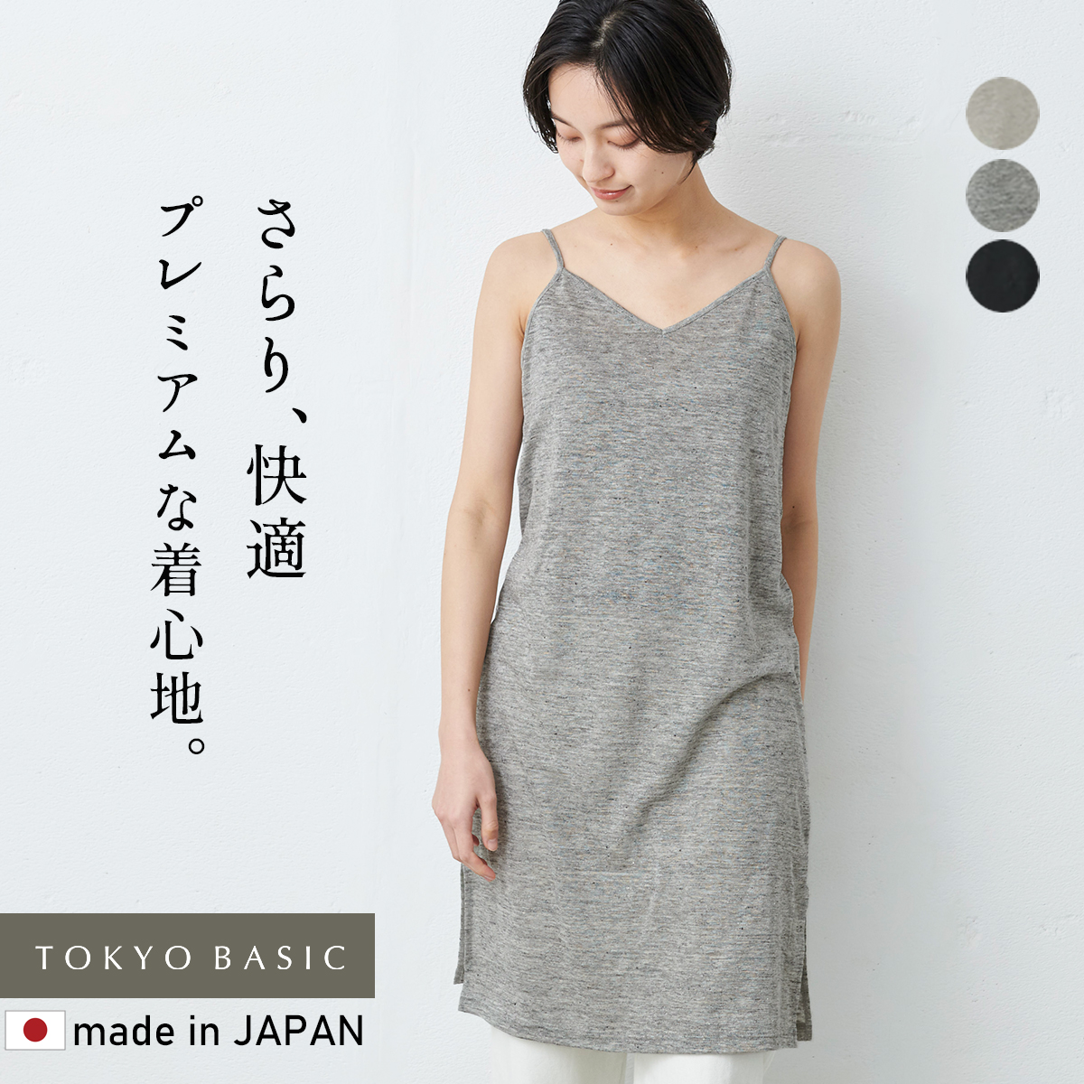 スリップ ペチコート ワンピース インナーワンピース 速乾性 プレミアム リネン100% キャミソールワンピース 日本製