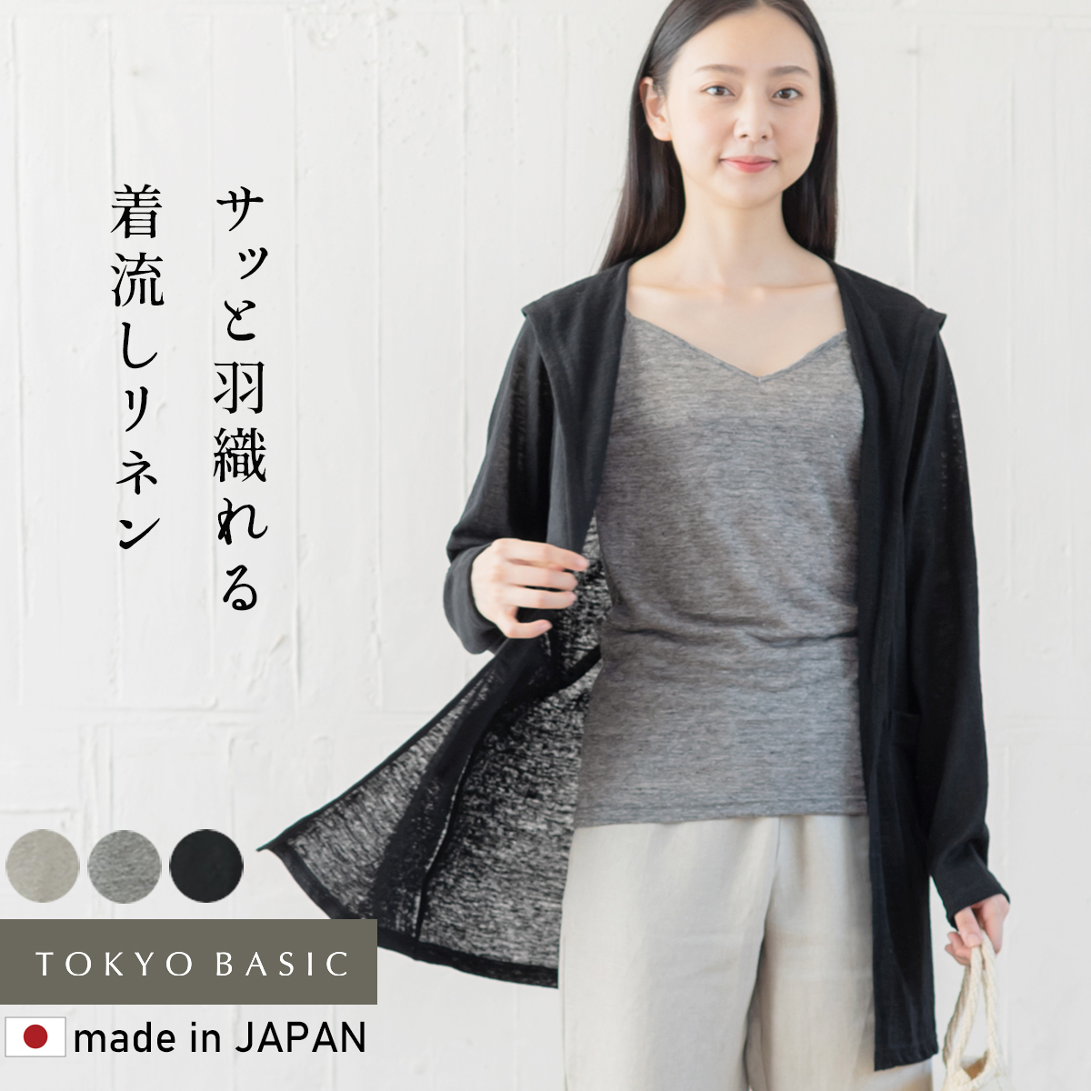 羽織ものレディース 夏 春 プレミアム リネン100% 着流し パーカー 日本製