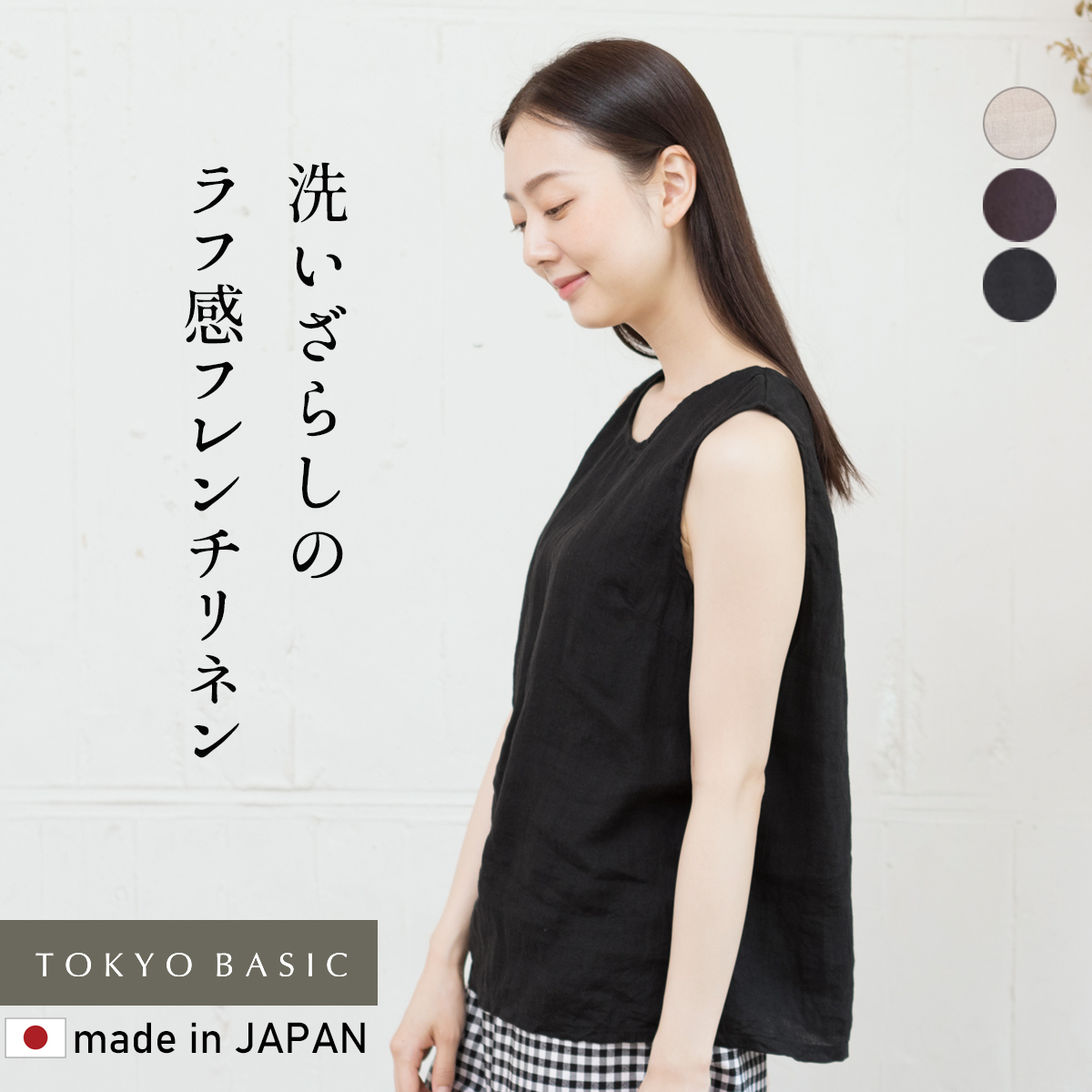 細番手フレンチリネンのラフ感のあるノースリーブブラウス。ナチュラルなシワ感、透け感も楽しめる薄手の生地は、軽やかで涼やかな着心地。一枚着としても、カーデやシャツのインナーとしても、蒸れずに涼しく着用できる、汗をかく季節に頼りになる一枚です。同素材のパンツとのセットアップで、ルームウェアとしてもおすすめ。tokyobasic TOKYO BASIC 東京ベーシック
