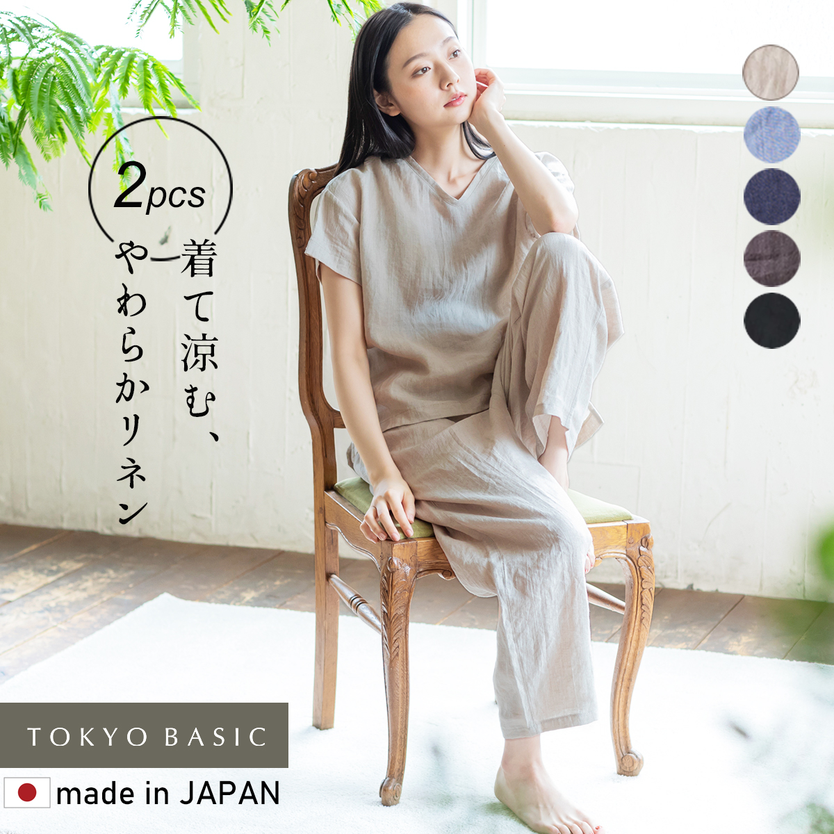 ルームウェア 上下セット レディース 夏 パジャマ 60番手 フレンチ リネン100% VネックPO ペチパンツ 日本製