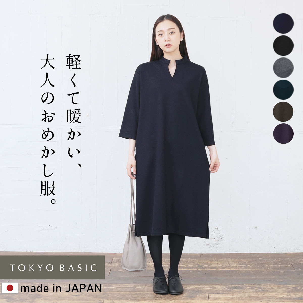 ワンピース レディース 40代 50代 きれいめ 秋 冬 長袖 圧縮 ウール100% バンドカラー ワンピース 日本製 暖かい 防寒