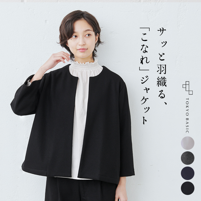 ジャケット レディース 結婚式 入学式 卒業式 オフィス 40代 50代 ノーカラー 圧縮 ウール100% こなれジャケット 日本製 暖かい 防寒