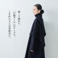 軽くて暖かい、「圧縮ウール」のケープは、サッとかぶるだけで、こなれた大人の雰囲気に。肩、二の腕まわりを、すっぽりと覆って、華奢見えするので、安心して着られます。また、前の丈が短く、後ろの丈が長いので、前はすっきりとスタイル良く見えて、気になる後ろ姿は、ふんわりとカバーします。