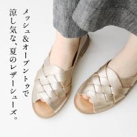 サンダル レディース 歩きやすい50代 ぺたんこ 日本製 本革 メッシュ オープントゥ シューズ Recipe RP-501 2E相当