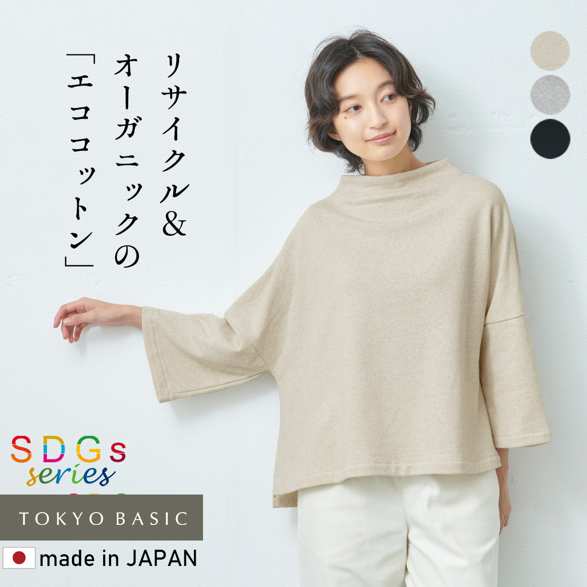 トレーナーレディース おしゃれ 40代 50代 リサイクル & オーガニックコットン モックネック 日本製