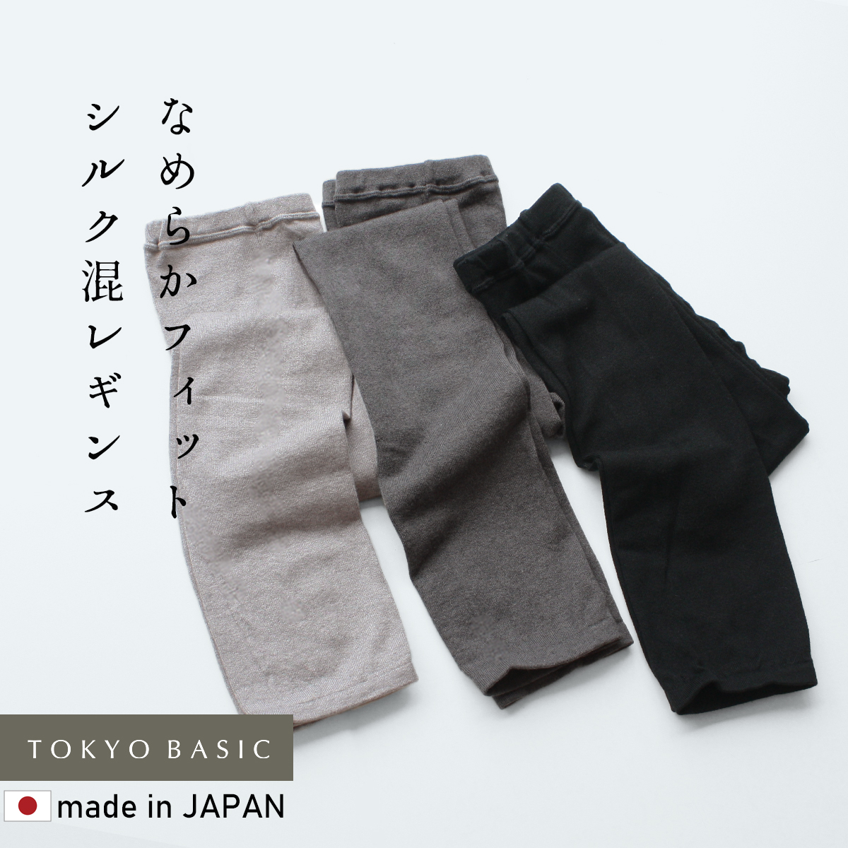 靴下産地の奈良で七十年以上続く老舗の工場さんで丁寧に編み上げた、オールシーズン対応のシルク混レギンス完成。コットンの吸水性とレーヨンシルクの保湿性に、抗菌・防臭作用も兼ね備えた大人女子に嬉しい一枚。なめらかな肌触りで、心地よく足にフィットしてくれます。