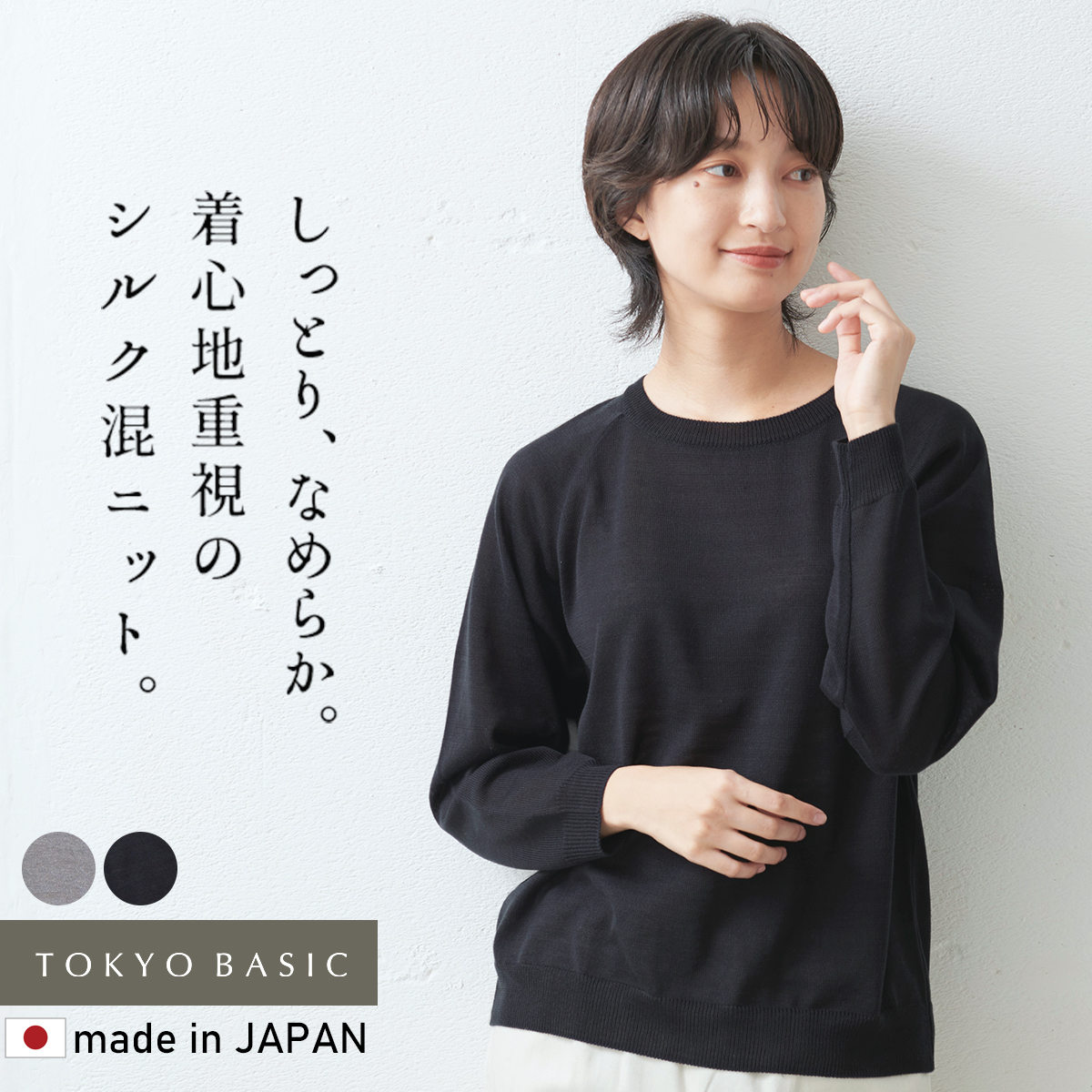 セーター レディース 50代 40代 ハイゲージ シルク混 クルーネック セーター 日本製