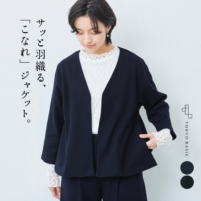 カーディガンのようにサッと羽織るだけで、「こなれる」圧縮ウールのラフジャケットに、Vネックのすっきりデザインが登場。タートルネックやカットソーと合わせれば、普段使いにちょうど良い綺麗めカジュアルに。ブラウスやアクセサリーを合わせれば、ちょっとしたフォーマルにも対応できます。