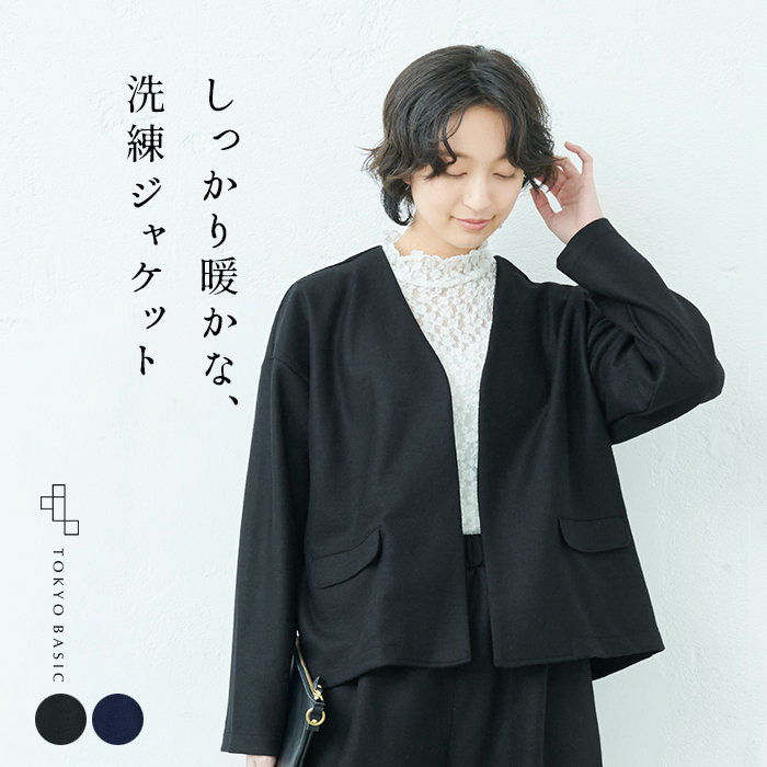 TOKYO BASICの秋冬の定番「圧縮ウール」よりも肉厚で暖かい、「強圧縮ウール」のジャケット。タートルなどと合わせてデイリーに、キレイめブラウスを合わせて、ちょっとしたフォーマルシーンに。
