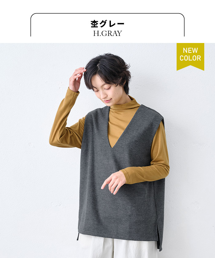 冬の定番「尾州の圧縮ウール」のシンプルで上品なベストは、ゆとりのあるシルエットですが、すっきりとした印象です。種類豊富な同素材アイテムとの、セットアップスタイルも楽しめます。軽くて暖かく、品のある質感なので、秋冬の着こなしに大活躍の一枚です。