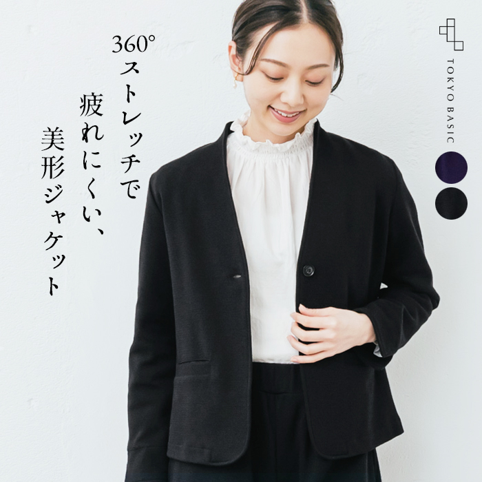 ジャケット レディース 40代 50代 360度 ストレッチ ノーカラージャケット 日本製 黒 紺 卒業式 入学式 結婚式