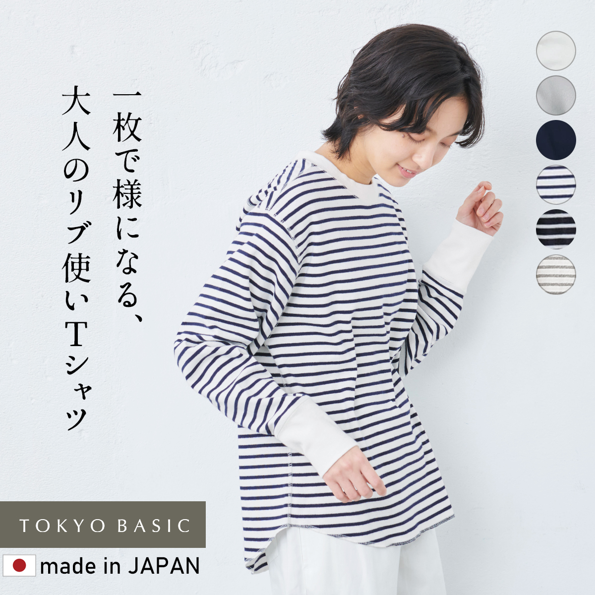 長袖tシャツ レディース 40代 50代 綿 ゆったり コットン100% フライス リブ使い プルオーバー 日本製 無地 ボーダー