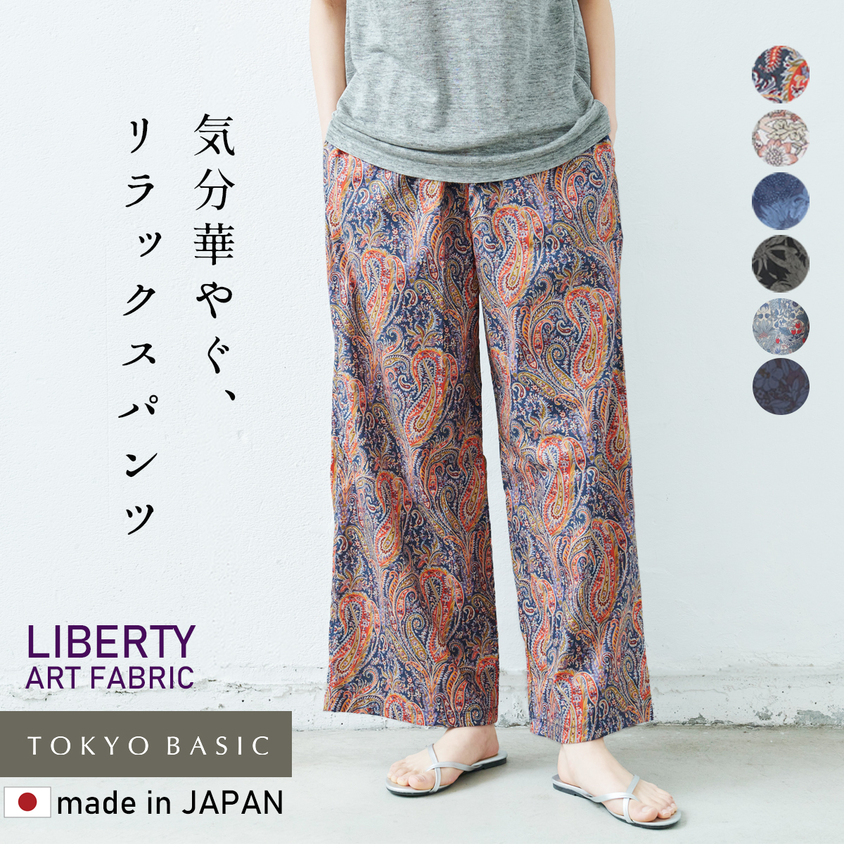 ワイドパンツ レディース 50代 イージーパンツ ゆったり リバティプリント ワイドパンツ 日本製