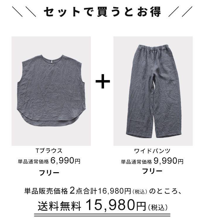 セットアップ レディース 50代夏 40番手 フレンチリネン100% Tブラウス + ワイドパンツ 2点セット 日本製