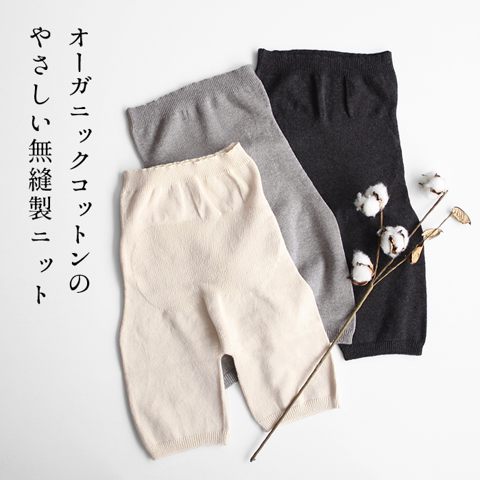 オーガニックコットンの優しい無縫製ニット。人にも地球にも優しいオーガニックコットン使用。ナチュラル派におすすめの温活アイテム。女性の悩み「冷え」の解消と、ストレスフリーな履き心地を考えた、年中重宝するインナーパンツ。腹巻きとパンツが一体になっているので、腹巻特有のまくれ上がりなどもなく、ヨレにくい。また、一体型なので着ぶくれも抑えてくれます。