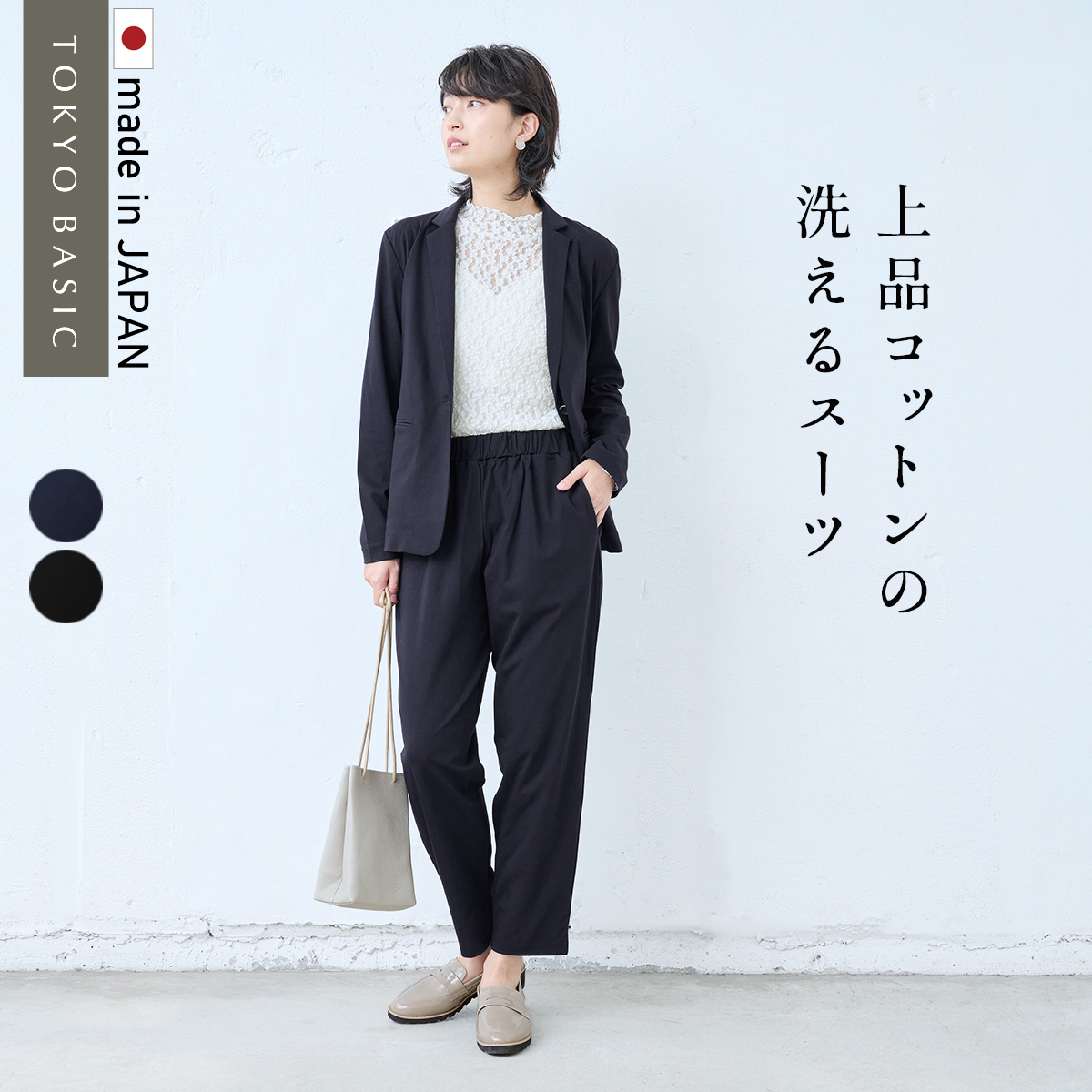 入学式 服装 ママ セレモニースーツ 日本製 洗える 50代 強撚糸 コットン100% こなれ テーラードジャケット アンクルパンツ 接触冷感