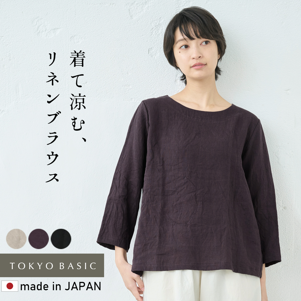 ブラウス レディース リネン 60番手 フレンチリネン100% 七分袖ブラウス 日本製 レディースブラウス