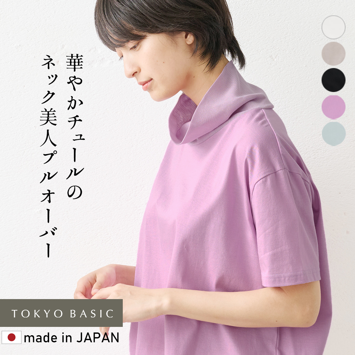 シアー トップス レディース tシャツ 40代 50代 コットン100% チュール 使い タートル 半袖 プルオーバー 日本製