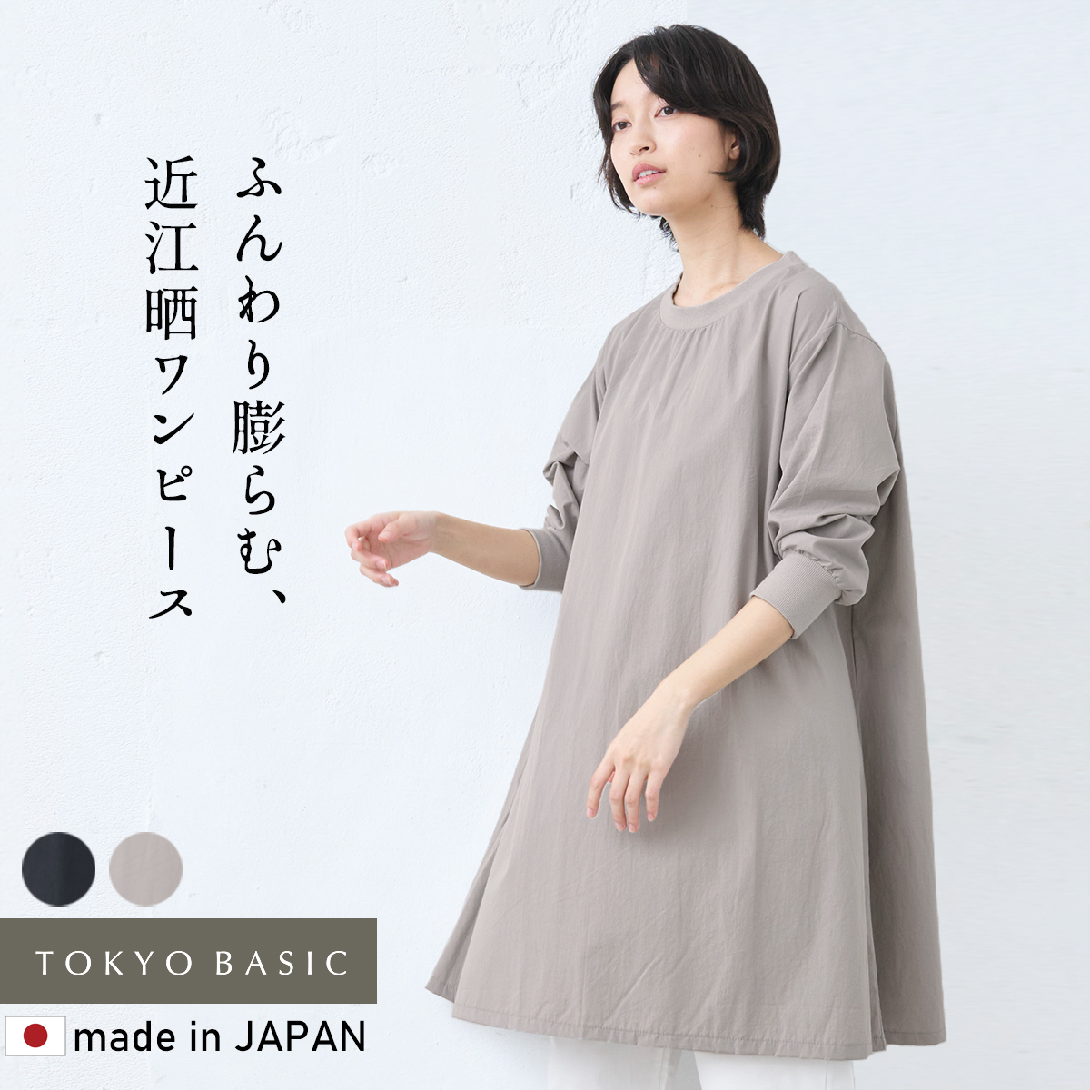 ワンピース レディース チュニック コットン100% 近江晒 ブロード リブ使い ワンピース 日本製 春 きれいめ