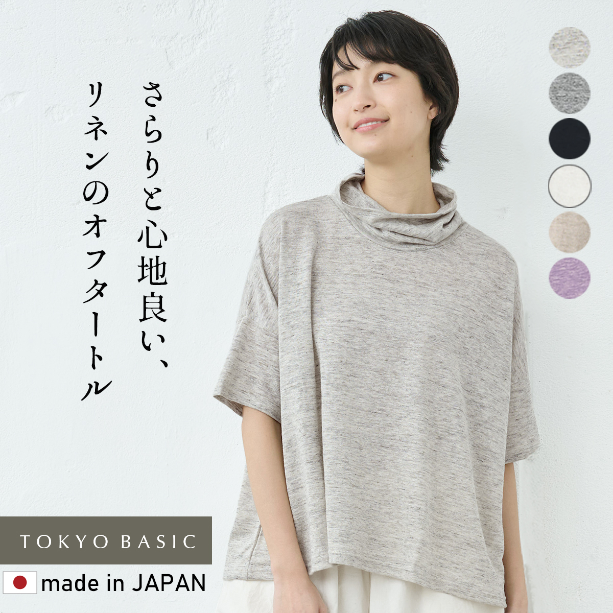 タートルネック 半袖 レディース 夏 薄手 プレミアムリネン100% オフタートル 半袖 プルオーバー 日本製 抗菌 速乾