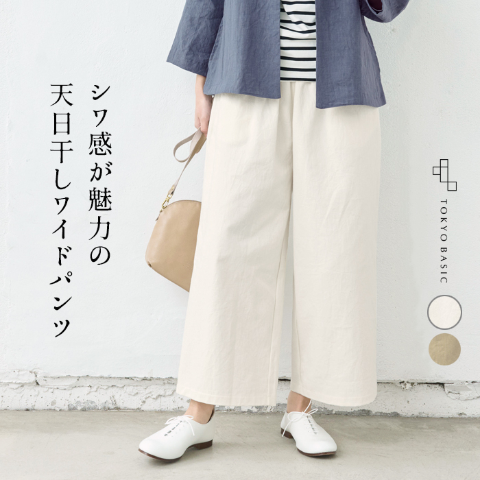 ワイドパンツ レディース パンツレディース 天日干しコットン カツラギ ワイドパンツ 日本製 40代 50代 ズボン