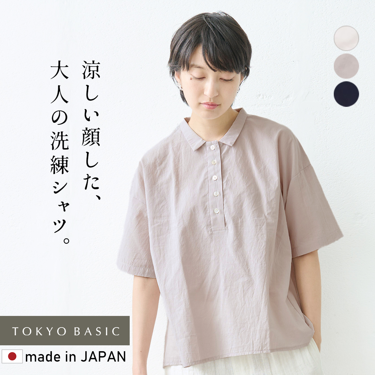 涼しい顔した、大人の洗練シャツ。洗練デザイン×ふんわり涼やかで心地良い素材の夏の主役シャツ。ふんわりソフトな風合いで、涼やかな薄手のコットンローンの五分袖シャツ。コンパクトな襟や背中のタックなど、細かなデザインにこだわり、シンプルながらも洗練された印象のシャツに仕上がっています。ゆったりとしたシルエットと薄手の素材で、暑い季節にも涼しく快適。手放せなくなるほど気持ちの良い一枚です。