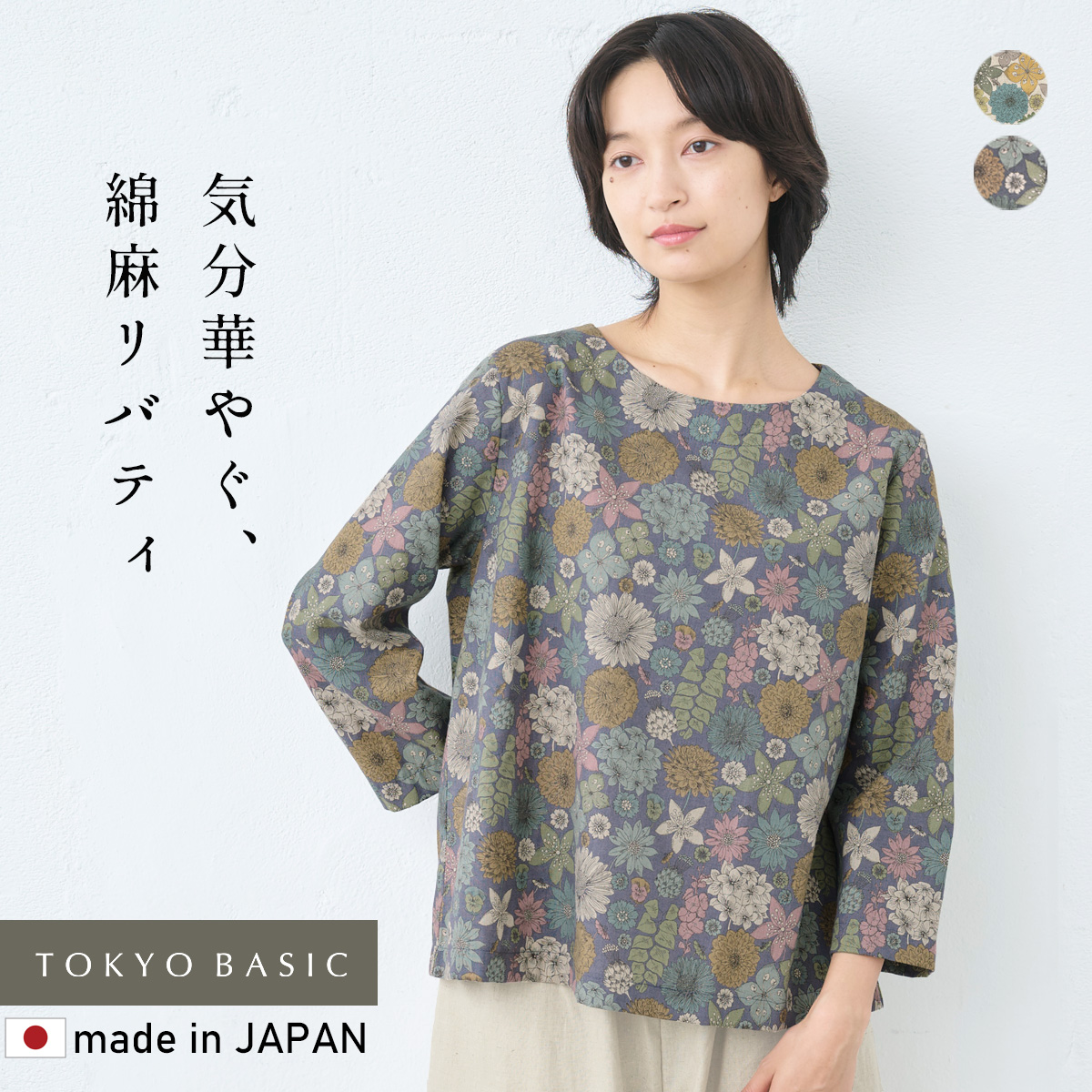 ブラウス レディース 長袖 40代 50代 リバティ リネン コットン 七分袖ブラウス 日本製 シャツブラウス 花柄 LIBERTY HOKKOH