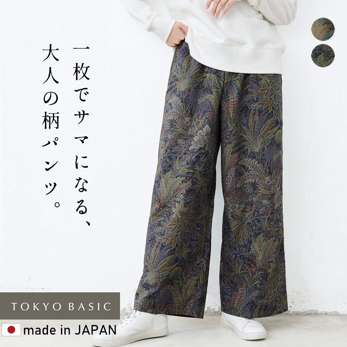 柄パンツ レディース イージーパンツ 50代 40代 オーガニックコットン100% リバティプリント ワイドパンツ 日本製