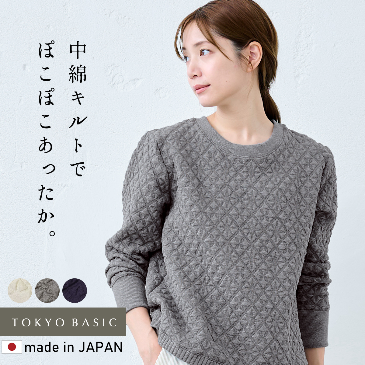 キルティング トレーナー 中綿 厚手 おしゃれ 40代 50代 尾州産 ストレッチ キルト 幾何学柄 リブ使いトレーナー 日本製