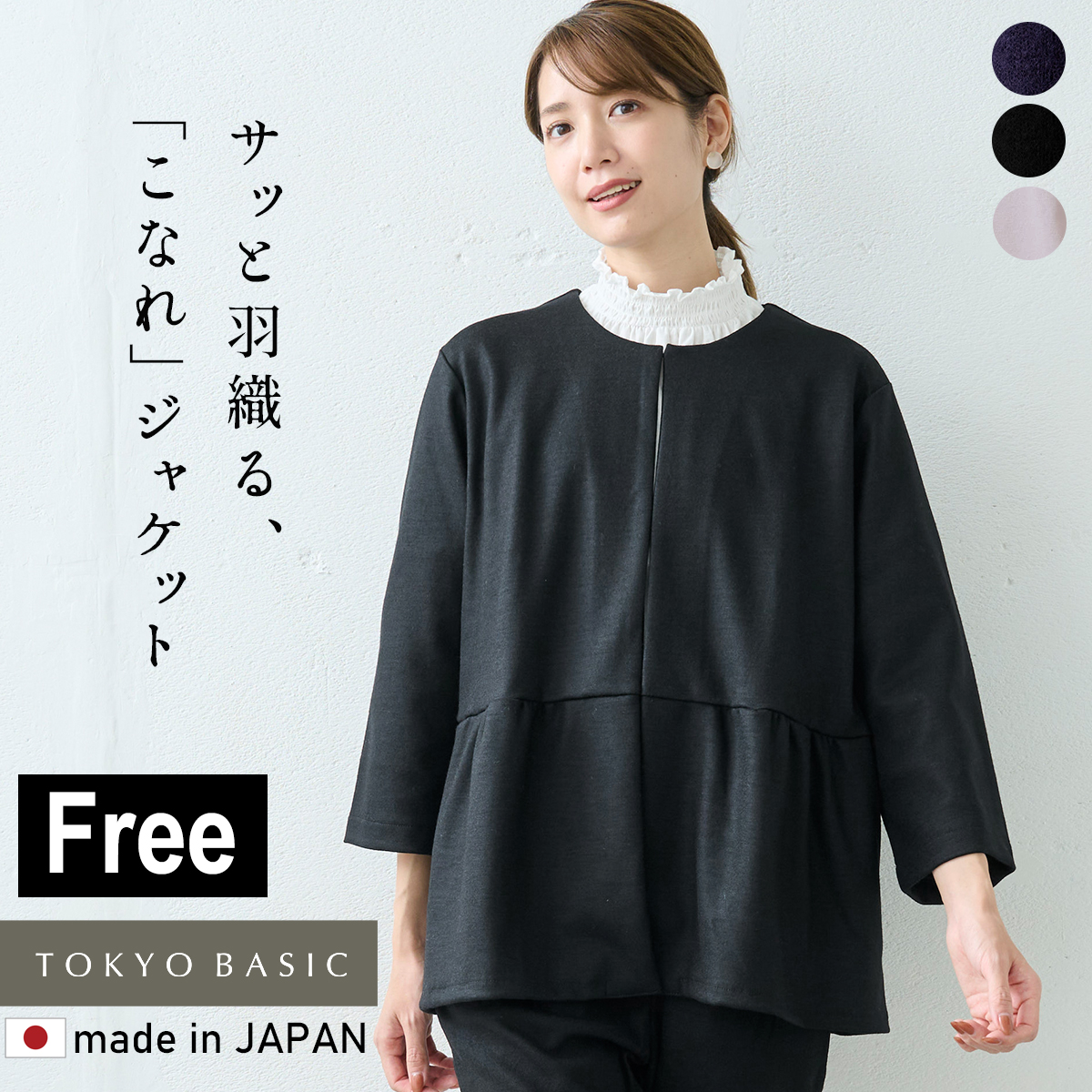 フリーサイズ ジャケット レディース 結婚式 入学式 卒業式 オフィス 40代 50代 ノーカラー 圧縮 ウール100% ウエスト切り替え こなれジャケット 日本製 暖かい